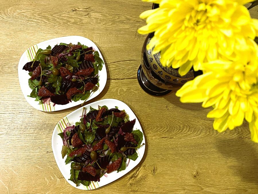 Как праздничный вариант очень рекомендую хотя бы раз попробовать. Главная в салате будет свёкла - сейчас она всё еще вкусная.