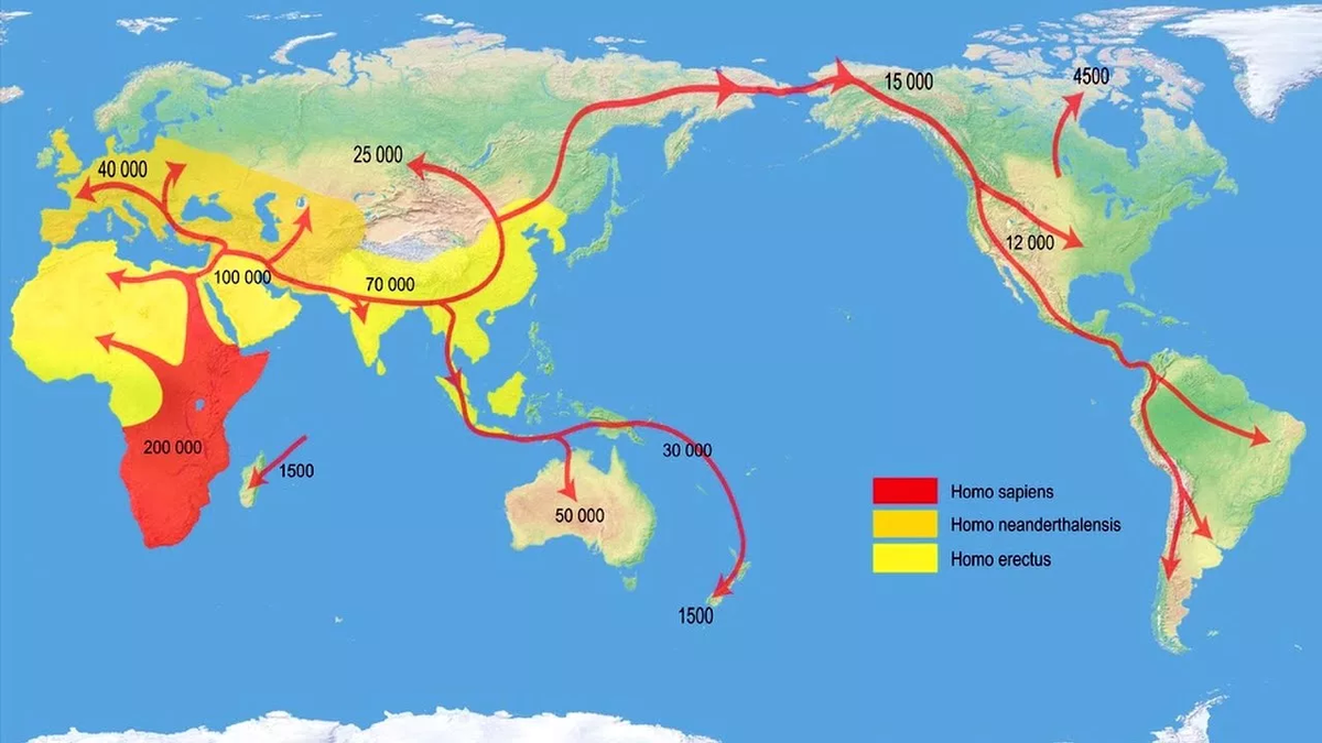 Примерно 60—80 тысяч лет назад, когда человекоподобные начали расселяться из Африки в Азию, Европу и Австралию.