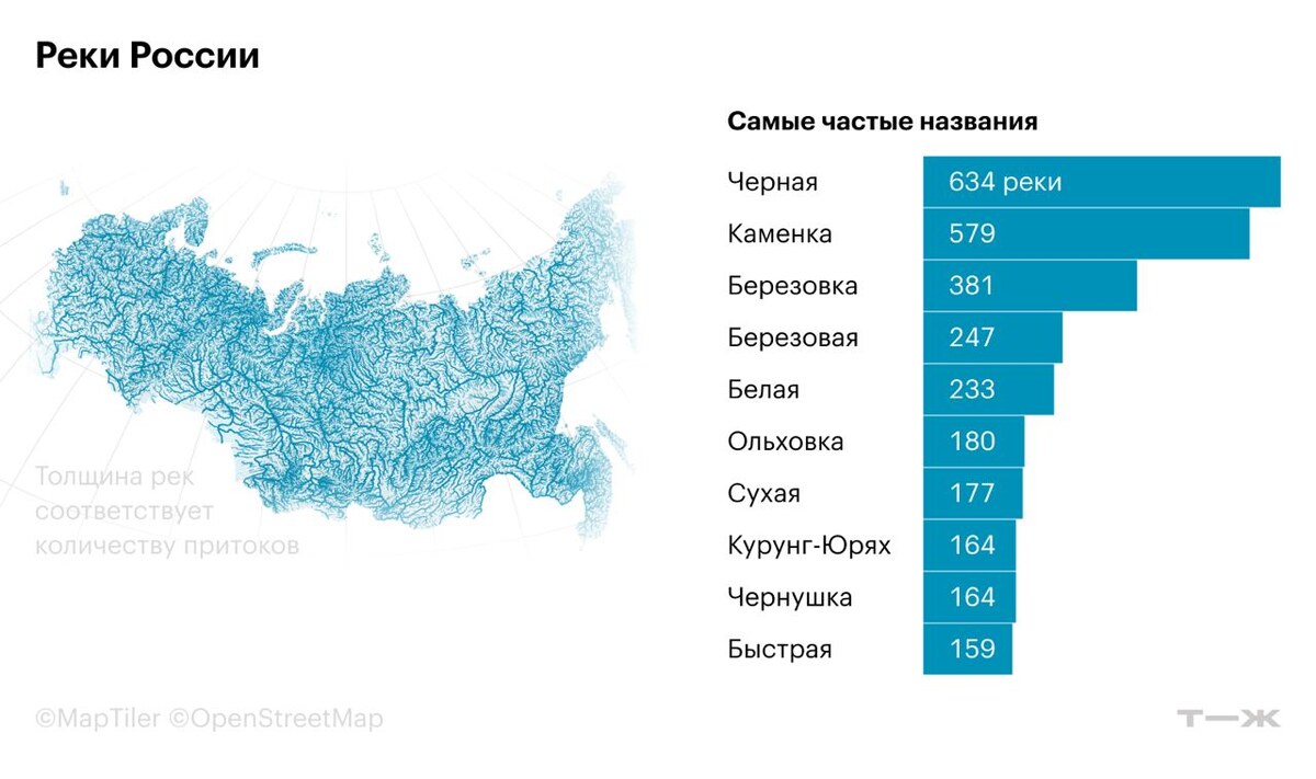 В России имеется: 🟢одна река Ю и две реки Ы; 🟢331 гора с названием Лысая и только одна — Батыя-Ойдубут-Дянгылах-Хаята; 🟢695 Кривых и 668 Долгих озер; 🟢болото площадью 53 000 км². Посчитали все географические объекты — смотрите, что получилось: https://t-j.ru/tg/geo-objects-russia/