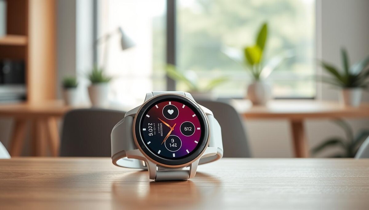Крупный план часов HUAWEI WATCH FIT 4 белого цвета, демонстрирующих изящный 43-миллиметровый дизайн и ремешок из мягкого фторэластомера. На циферблате часов представлен цифровой интерфейс с функциями отслеживания физической формы, отражающими суть современных технологий. На переднем плане - изящные блики света, которые подчеркивают глянцевое покрытие часов. В центре - технологичное рабочее пространство с минималистичными элементами дизайна, создающее ощущение новаторства. На заднем плане - тонкие оттенки зелени и естественное освещение, создающие уютную атмосферу. Акцентируйте внимание на часах, создавая при этом яркое и профессиональное настроение, передавая волнение по поводу выхода нового продукта. Используйте мягкое естественное освещение, чтобы подчеркнуть материалы и мастерство изготовления, без использования текста или логотипов на изображении.