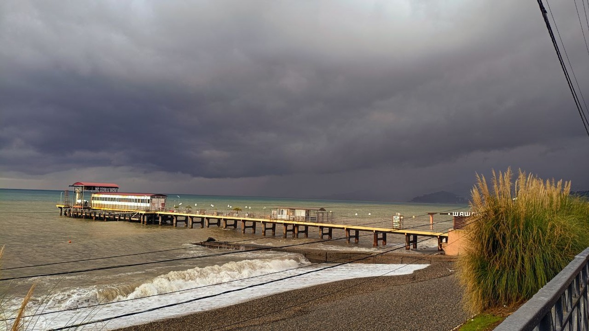 Конечной точкой нашего похода оказался Адлер. Здесь и планируется встретить Новый год и проводить старый. Вот сегодня дождь, тучища над морем, а на Розе Хутор снег пытается таять, надо ехать и посмотреть!