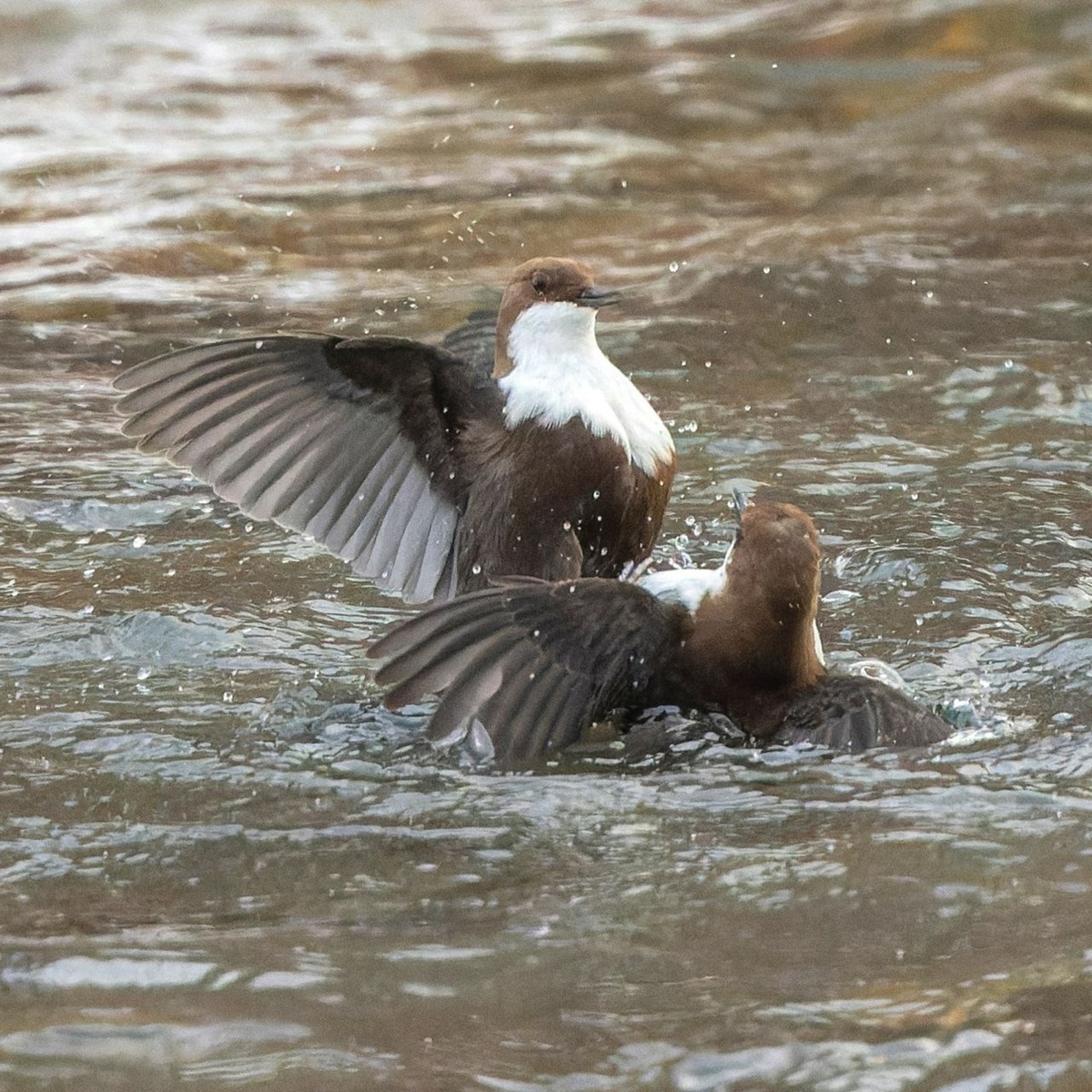Министерство экологии Башкирии опубликовало серию фотографий ожесточенного противостояния оляпок из‑за территории. Эти пернатые яростно отстаивают свой участок реки — для них это жизненно важно, ведь здесь они добывают пропитание и выращивают потомство. Особенно обострённая борьба за территорию наблюдается в сезон гнездования, который приходится на зиму и весну. В этот период любая потенциальная угроза воспринимается птицами как прямой вызов их выживанию. Оляпки, которых нередко называют «водными воробьями», действительно принадлежат к отряду воробьинообразных. Однако от обычных воробьёв их отличает более крупный размер: длина тела достигает 20 см, а размах крыльев — 30 см. Главная особенность этих птиц — уникальная способность нырять и бегать по речному дну в поисках пищи: личинок и рачков. По словам биологов, оляпки идеально приспособлены к жизни в бурном потоке. Плотное оперение не пропускает воду, особое «третье веко» защищает глаза под водой, а специфическое строение ноздрей предо