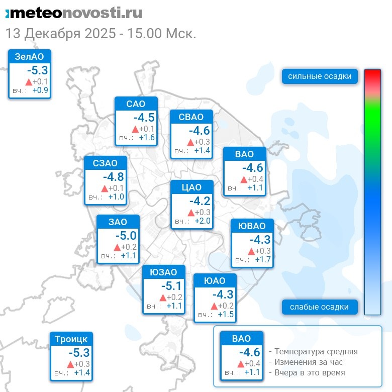 В 15:00 в Москве было от -5.7°C до -3.8°C, средняя температура -4.6°C #погода #Москва #зима #температура #13декабря #суббота Перейти на сайт Прогноз погоды на 14 дней