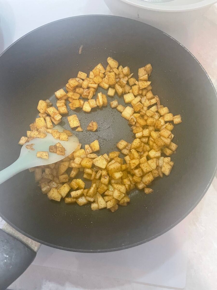 Сегодня приготовила Творожные плюшки с яблоками с корицей. Очень понравился процесс готовки, впервые жарила яблоки), и очень понравилось разминать тесто, творожное тесто тоже впервые делала). Случайно где-то попался отрывок деления кусков рулета, решила применить, в рецепте не указано, а я использовала обычную нить, для разрезания. Интуитивно после приготовления налила сгущенку сверху, Ооочень сочный вкус получился 🤤, хотя, само творожное тесто после приготовления вызвало подозрение, будто не готово, но нет, всё ок!)