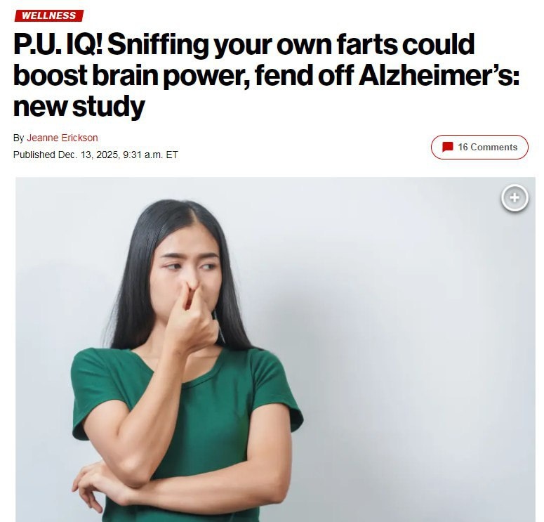 Запах собственных газов ПОЛЕЗЕН для здоровья. Да, увы, исследование реальное и мы сейчас распишем, что выяснили учёные: 🔴 В экспериментах на мышах вещество сероводороде (то есть ваши газики) замедляло нейродегенерацию и улучшало память и моторику. 🔴 Мыши стали активнее и демонстрировали лучшую память. 🔴 Всё потому, что сероводород участвует в клеточных сигнальных процессах и защищает нейроны. Важно понимать: нюхать газы специально — это НЕ лечение. Исследование говорит о потенциальных лекарствах на основе сероводорода. Воняешь здоровьем 🆗 CtrlAltDelights- подписаться