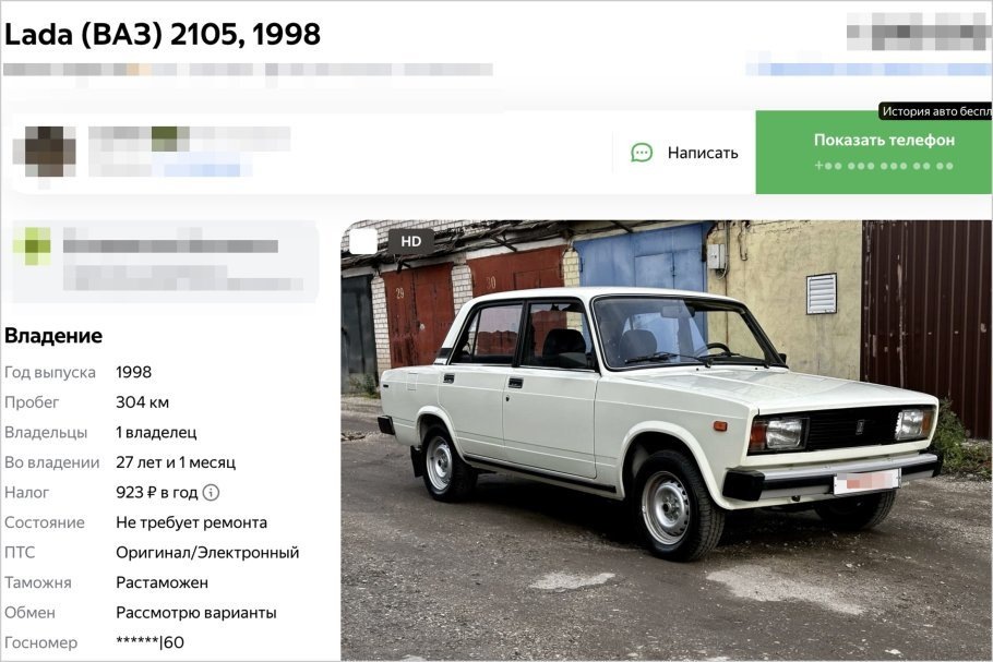 Ввиду идеального состояния автомобиля, в салоне которого сохранился тот самый запах новых «Жигулей», продавец считает, что ВАЗ-2105 вполне может претендовать на место в частной коллекции.