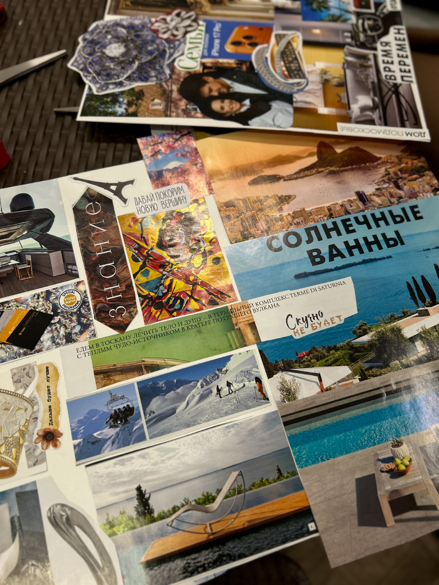 Первая из серии предновогодних встреч по созданию ресурсного коллажа с Анной Саламовой — про то, что вдохновляет и откликается, от чего внутри становится радостно и тепло. Было удивительно красиво наблюдать, как взрослые, успешные, вечно занятые люди позволили себе сделать паузу и с удовольствие визуализировали свои желания 🎄