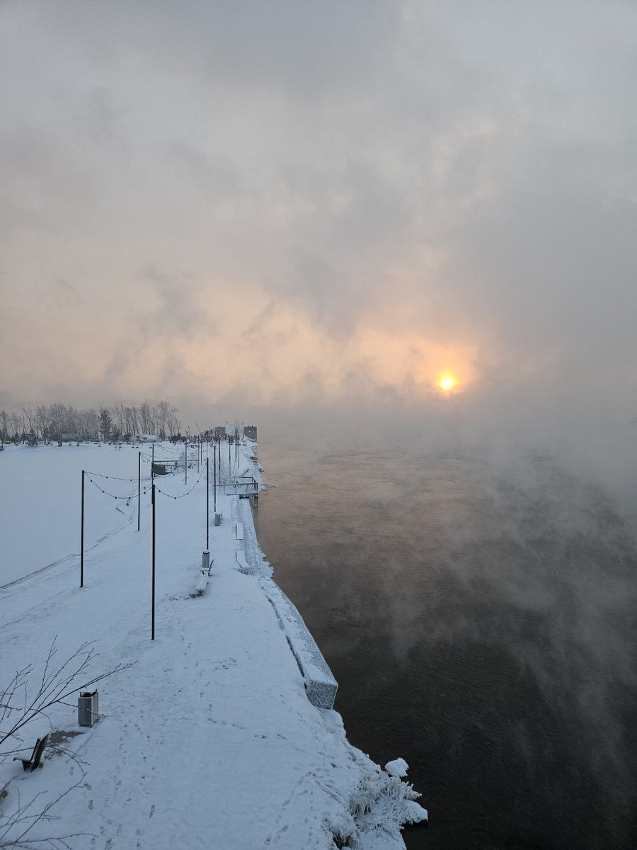 В ответ на пост Снято это, когда в Красноярске стояли морозы. Одна из особенностей Енисея – он не замерзает зимой. За фото и видео спасибо нашей подписчице❄️ ТВК