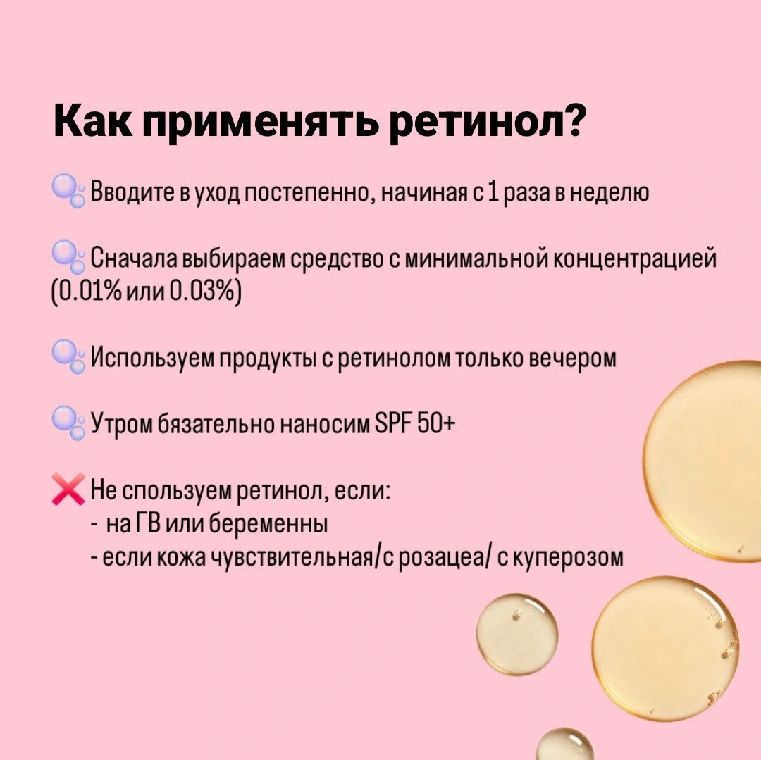 ❤️❤️❤️❤️❤️❤️❤️ ❤️❤️❤️❤️❤️❤️❤️❤️❤️❤️ ❤️❤️❤️❤️❤️❤️❤️❤️ ❤️Кому НЕЛЬЗЯ применять ретинол❤️ Из-за сильного воздействия ретинол не рекомендуют использовать для: ❤️чувствительной кожи ❤️для кожи с куперозом ❤️для кожи с розацеа и экземой. ❤️❤️❤️❤️❤️❤️❤️❤️❤️❤️❤️❤️ Также ретинол стоит исключить из ухода за год до беременности и придерживаться этого правила весь период вынашивания и кормления. ❤️❤️❤️❤️❤️❤️❤️❤️❤️❤️❤️❤️ ❤️Кому МОЖНО применять ретинол? ❤️коже с возрастными изменениями ❤️с неровным тоном кожи (пигментация/постакне) ❤️при акне (если продукт для проблемной кожи) Ретиноиды рекомендуется использовать в вечернем уходе, на утро обязательно СПФ крем, так как ретинол вызывает фоточувствительность кожи. ❌️ Не сочетаем ретинол с кислотами AHA и BHA, витамином С, исключаем пилинги и другие агрессивные процедуры, повреждающие роговой слой. ❤️Ретиноиды имеют накопительный эффект. Первые видимые результаты видны после 2 месяцев использования, а через 6-12 месяцев регулярного применения буде