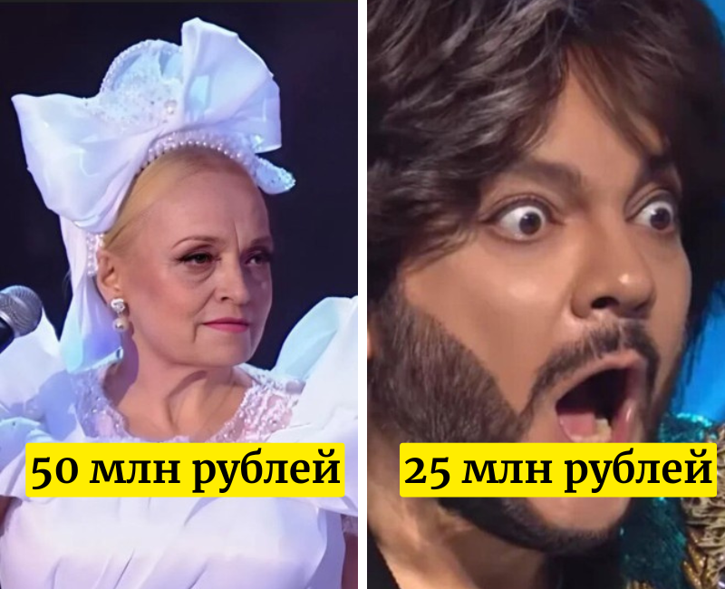 Замыкают тройку лидеров «тяжеловесы» старой гвардии. Ирина Аллегрова и Филипп Киркоров оценили себя одинаково — в 25 миллионов рублей. «Шальная императрица» и «Примадонн» решили не демпинговать.