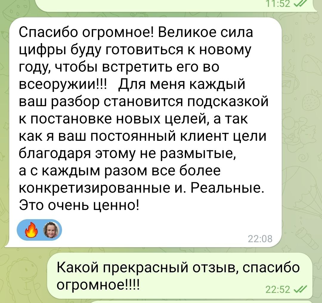 Хочу поделиться с вами отзывом на прогностику на 2026 год. Всегда радуюсь, когда вижу, как люди используют мои рекомендации и получают ощутимые результаты 🔥🔥🔥 Если вам тоже так надо, то подробнее про прогностику тут: https://dzen.ru/media/numero_high/po-motivam-segodniashnih-razborov-69398d120a1fe9680953b92f