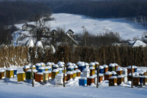 · Защита от осадков: Ульи должны быть защищены от попадания осадков внутрь (плотные крыши, наклон улья вперед).