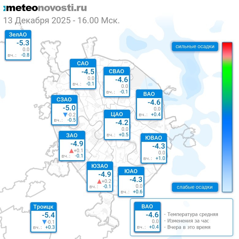 В 16:00 в Москве было от -5.6°C до -3.8°C, средняя температура -4.6°C #погода #Москва #зима #температура #13декабря #суббота