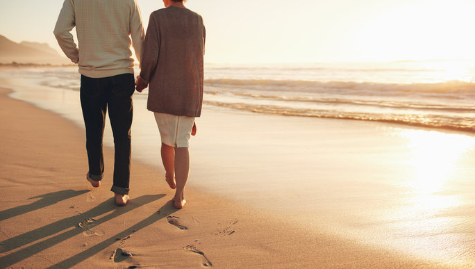 We strolled along the beach at sunset. (Мы прогуливались по пляжу на закате.)