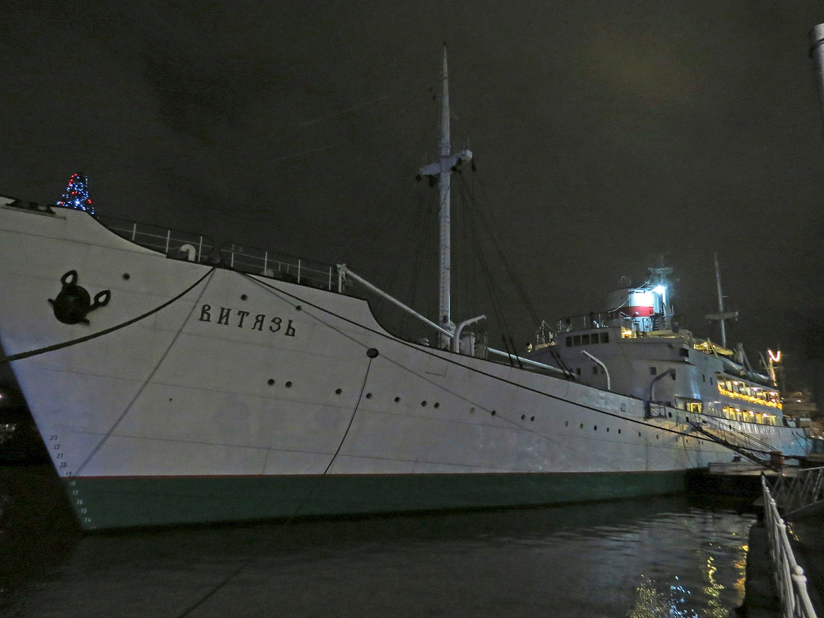 "Витязб" был спущен на воду в 1939 году как грузопассажирское судно "Марс" на верфях "Шихау" в Бремменхафене на Северном море и предназначался для рейсов в Испанию. В войну он стал транспортом, и из Пруссии вывез более 20 000 беженцев, а после войны по репарациям был передан Англии и переименован в "Эмпайр Форт" ("Вперёд, империя!")... впрочем, вперёд Британской империи двигаться было уже не суждено, и видимо по закону "как вы лодку назовёте..." судно попало в Советский Союз и под названием "Экватор" вошло в состав торгового флота на Балтике. Наконец, в 1947 году теплоход глянулся Институту океанологии, был переоборудован в научное судно и переименован сначала в "Адмирала Макарова", а затем - в "Витязя", в память об одноимённых парусно-винтовых корветах 19 века, на которых соответственно ходил в Гвинею Миклухо-Маклай и вокруг света тогда ещё не адмирал, а лишь капитан Макаров. После первого экспериментального рейса в Чёрное море "Витязь" был переведён во Владивосток, и так, в 1949 г