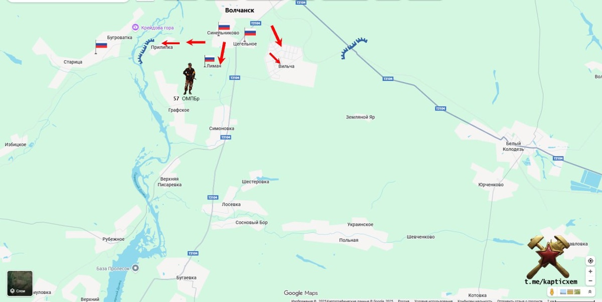 В ответ на пост Окрестности Волчанска Ожидаемо начались бои в тылу гарнизона Прилипок, прикрывающих переправу к Бурговатке. Прилипки почти отлипли от Украины, с чем всех и поздравляю-))) схемы и карты