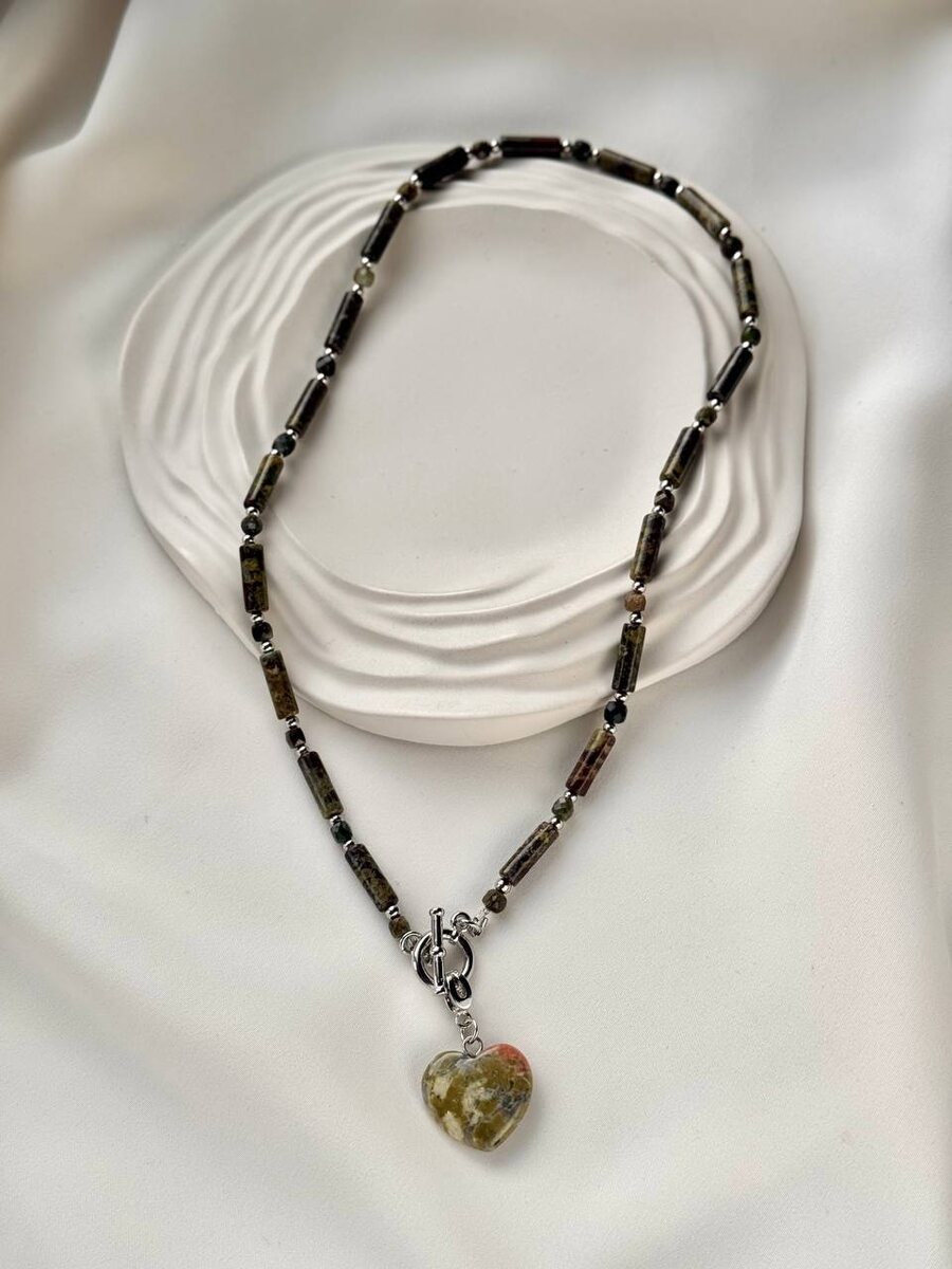 🌟Новинка!🌟 Колье из зеленой яшмы и турмалина в огранке с кулоном «Сердце». Этот камень цвета крепкого зеленого чая с вкраплениями оливкового и кофейного считается сильным оберегом от зависти и негатива😉 Длина колье 45см. Для заказа пишите в WhatsApp по ссылке: https://wa.me/79220146086 Внимание‼️ Это единственный номер телефона для оформления заказа👆🏻 Или оформите покупку на сайте Cristaria.ru