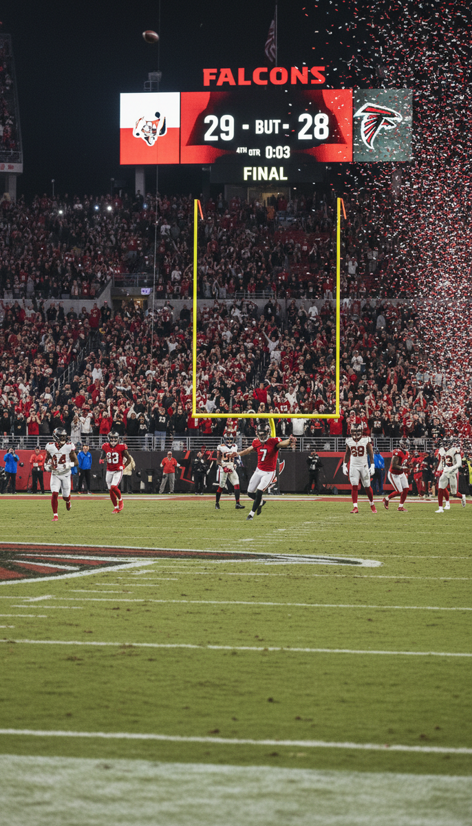 Оторвалась Тампа на два тачдауна от Атланты в начале решающей четверти. Казалось прямой путь к победе. Ан нет. Закрутилось покруче, чем в детективах. Фэлконс отыгрывают один тачдаун, но двухочковую попытку не реализуют. Снова Атланта тачдаун и снова нет реализации. И отставание два очка. И опять атакующий драйв Фэлконс, завершающийся филдголом - победа 29:28.