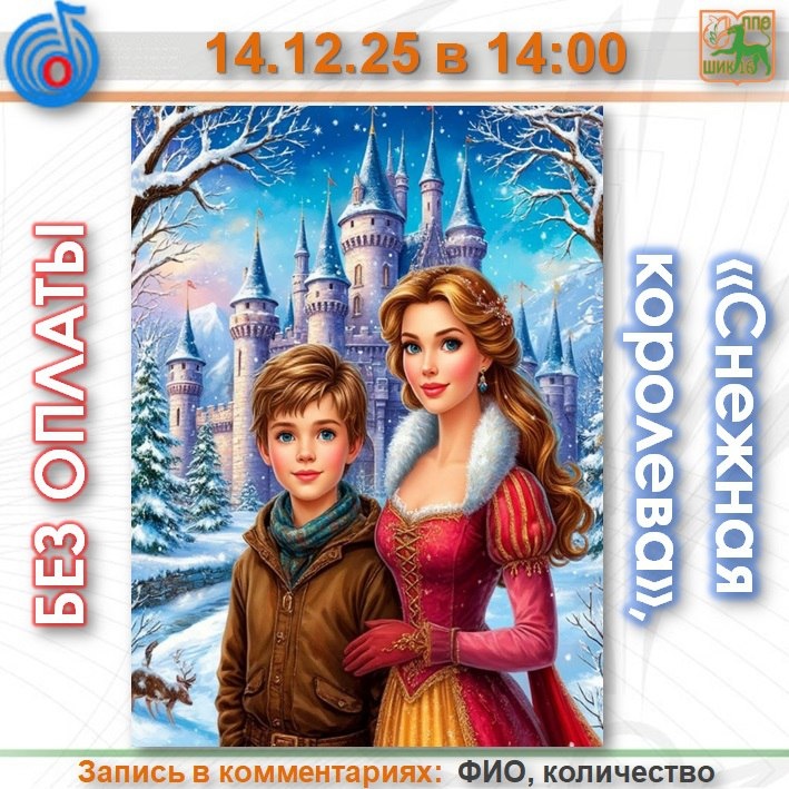 🎄Снежная королева, Новогодняя ёлка 🏛️Концертный зал Останкино 📆14 декабря в 14:00 🎫 Всем спасибо. Билетов больше нет. 🎅🏻Представление с Дедом Морозом и Снегурочкой начинается в фойе за 30 минут до начала спектакля. Захватывающее шоу «Снежная королева», где будут сочетаться: песочная анимация, живая музыка и театральное чтение. Это событие обещает быть поистине волшебным и незабываемым, как для детей, так и для взрослых. Показ «Снежной королевы» с песочной анимацией – это не просто театрализованное представление, это целое путешествие в мир сказки, которое объединит разные виды искусства и подарит зрителям незабываемые эмоции. Мы приглашаем всех вас стать частью этого волшебного события, чтобы вместе ощутить магию сказки которая объединяет многие поколения.