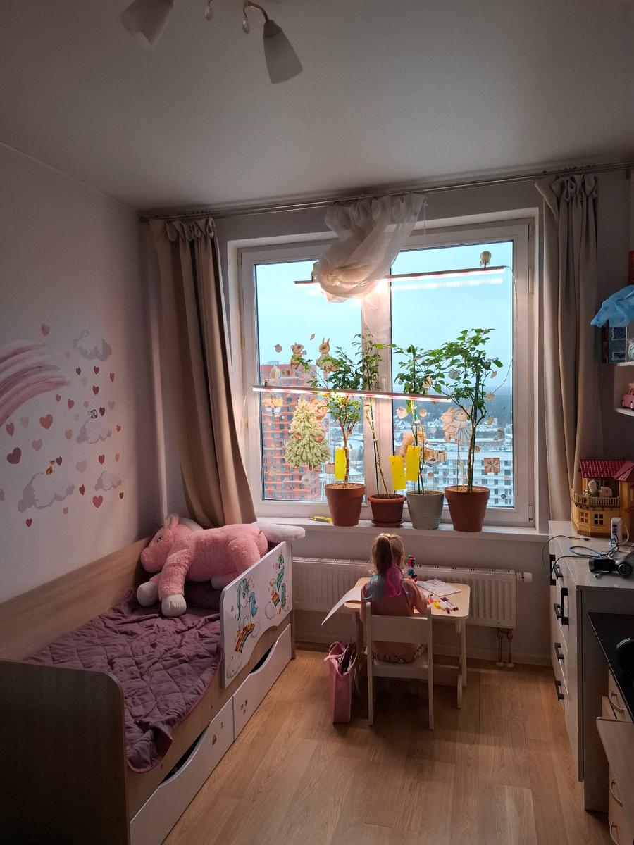 Сегодня я поставила будильник на 7 утра. Не скажу, что мне этого хотелось, но я выбрала такой вариант. Потому что представление, на которое мы поехали вечером, начиналось аж в 17.30 и заканчивалось в 19.30, и Лера просто не выдержала бы такое (а до дома ехать потом им с бабушкой неблизкий). Поэтому я решила разбудить ее в 7.30, и уложить с 13 до 15 как в садике. На завтрак Лера попросила овсянку с вареньем (в последнее время она прям просит ее и часто))). Пока она доедала, я решила посмотреть, что получится, если поставить столик в ее комнате к окну (тюль все еще наверху, завтра мы это исправим)) В общем, пока я ходила и смотрела, Лера такая - а где мой стол? Я говорю в комнате. Она молча берет свой чемоданчик для рисования... и уходит рисовать) сразу и опробовали)) Просидела довольно долго, сначала с рисунком, потом что-то раскрашивала. Привыкает к новой комнате. Сходили погулять ненадолго. На улице сильный ветер и очень холодно. Достали прошлогодний комбинезон зимний, я была у