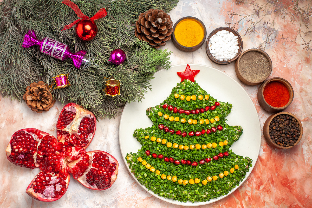 - В центр браслета можно положить горсточку орехов или веточку зелени. Дайте салату пропитаться в холодильнике 1–2 часа.