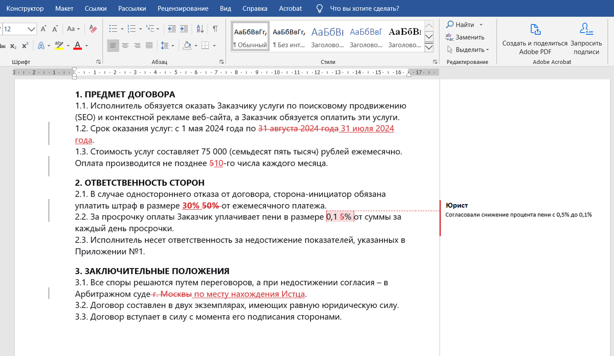 Как согласовать договор впятером и не сойти с ума: режим рецензирования в Word