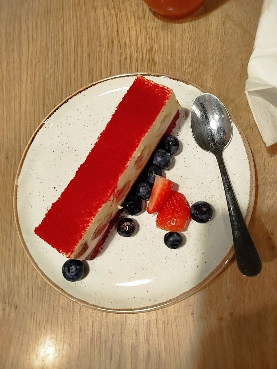 Вишневое тирамису взяли в Шоколаднице на двоих и подали еще с клубникой 🍓 и голубикой 🫐