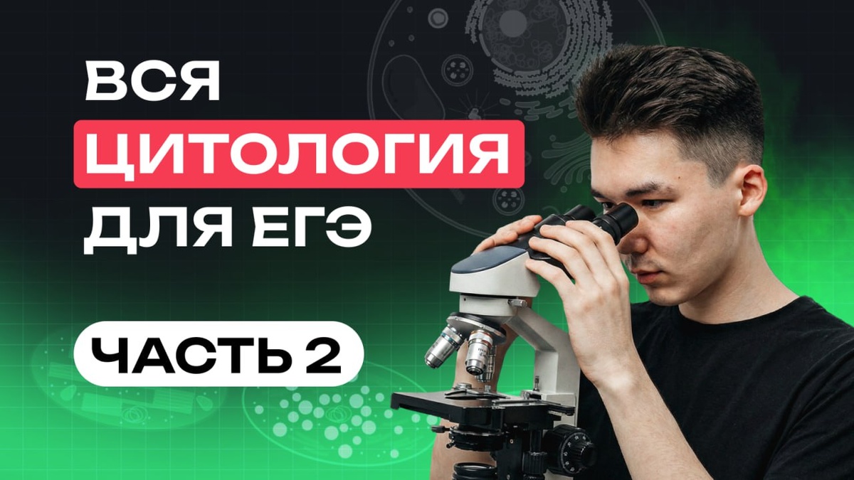 Вся цитология для ЕГЭ: часть 2 ⚡️ Ребята, всем привет, это Нурлан! Уже завтра мы продолжаем наше погружение в цитологию в 15:00 МСК В прошлый раз мы с вами успели пройти строение эукариотической клетки, мембранный транспорт и осмос: смотрите вебинар здесь, если пропустили. В это воскресенье разберём биохимию клетки: всё от белков до нуклеиновых кислот. Также обсудим матричные процессы (за эту тему можно получить 3 балла во второй части) и метаболизм. На вебинаре будем решать настоящие егэшные задания. Покажу вам, в каких линиях встречается цитология, и даже эвристику мы с вами немного обсудим 🙌 Тем важная, будет очень полезно! Приходите на трансляцию завтра в 15:00 по Москве YouTube: https://youtu.be/1gsD4bpLwmw ВК: https://vk.com/video-184221081_456264086