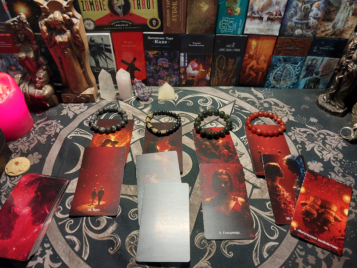 Всем добрый вечер, я вас всех приветствую. У нас с вами сегодня расклад на четыре позиции. Жалеет ли он о расставании с вами. Первая позиция и первый вариант – браслет с серым камушком, второй вариант – браслет с чёрным камушком, третий вариант – браслет с зелёным камушком и четвёртый вариант – браслет с красным камушком. Ваша задача – выбрать вариант интуитивно, можете в комментариях написать, какой вариант вы выбрали и как он у вас проигрался. На первый вариант вышла карта вечная любовь. И я достаю дополнительную карту к этому варианту, вышла карта путь. Однозначно человек жалеет о том, что вы с ним расстались. Человек жалеет о том, что прекратились ваши отношения. Он держит к вам путь, он хочет к вам вернуться, он хочет вернуть эти отношения. Потому что он испытывает к вам действительно сильные чувства. На второй вариант вышла карта кармическая связь. С мужчиной, с которым вы расстались, у вас кармическая сильная связь. Дополнительная карта вышла на этот вариант – это слёзы. Да, д