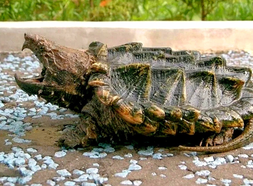 - Голова и шея: Голова крупная, треугольной формы, с мощным, острым клювом. Шея длинная и подвижная, что позволяет черепахе быстро хватать добычу.