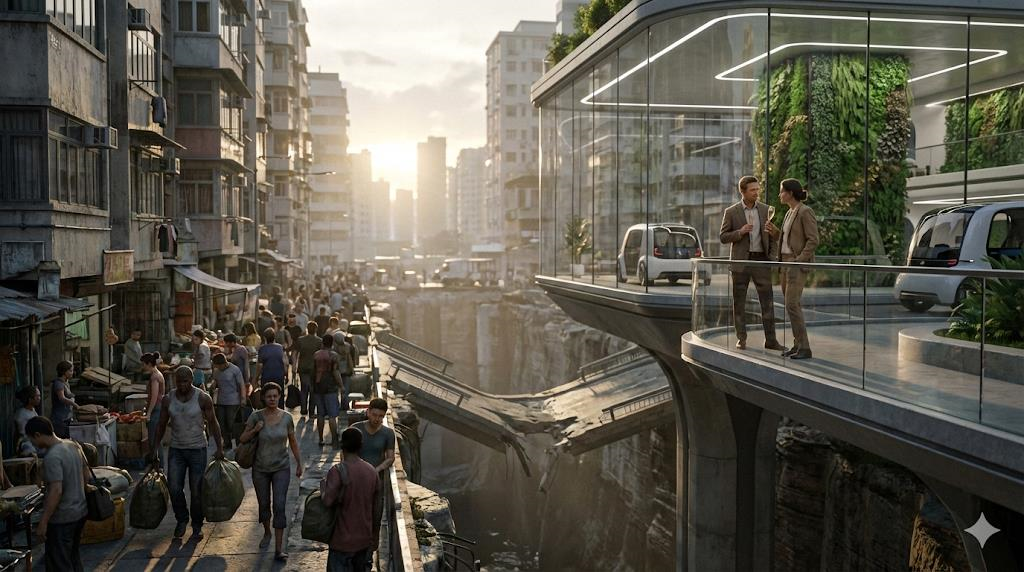Я говорю не о какой-то отдельной группе неудачников, которые не смогли вписаться в рынок. Я говорю о структурном сдвиге, который делает бедность и неравенство не просто постыдными фактами, а смертельной угрозой для всей системы. В этом новом мире богатые богатеют неприлично быстро, а все остальные, которые не входят в узкую элиту, медленно скатываются вниз.