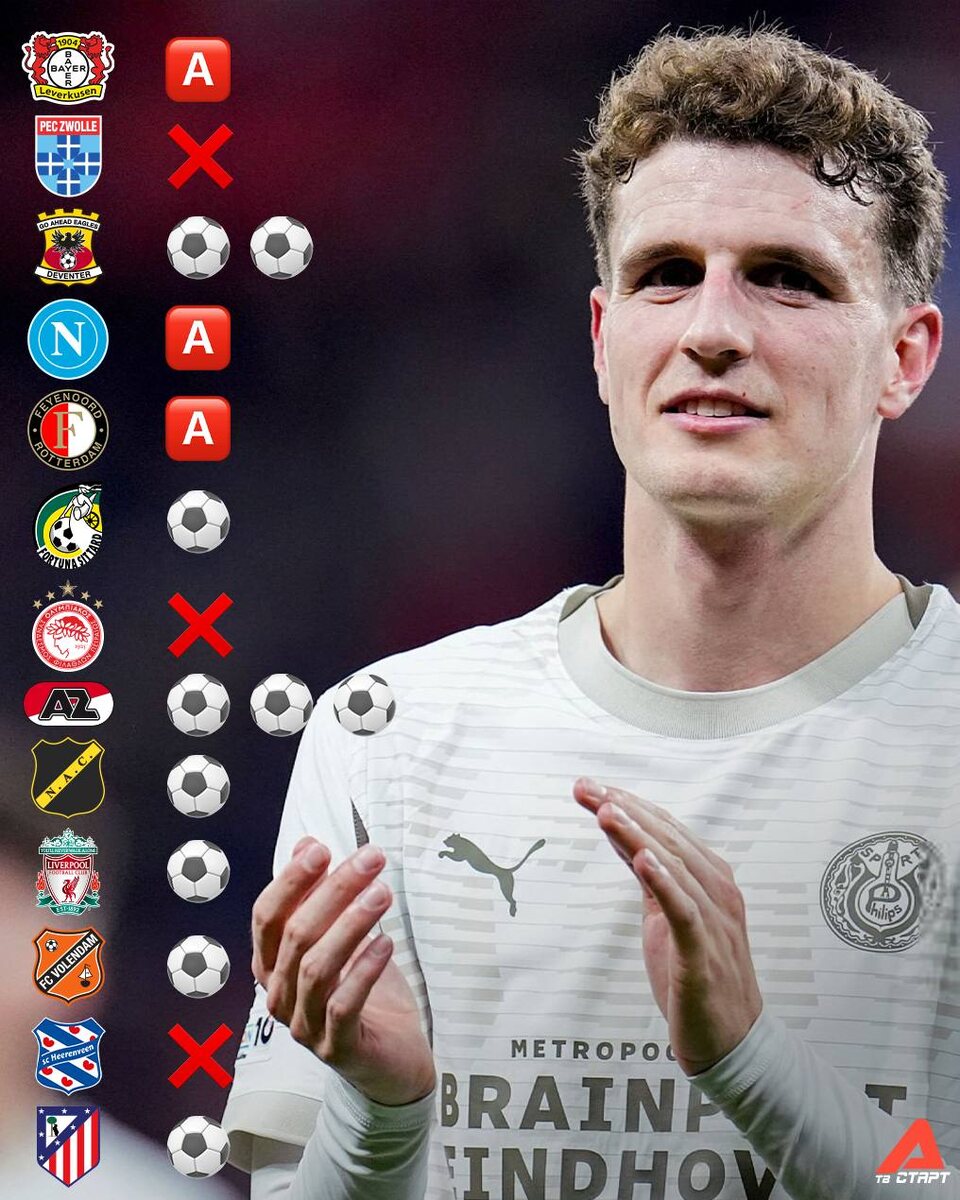 🔥 Гус Тиль набрал невероятную форму! Голландец отличается результативными действиями почти в каждом матчем с начала октября. Надеемся, и сегодня он нас порадует. Смотрите игру «ПСВ» – «Хераклес» с его участием в 22:00 на телеканале «Старт» 📺 🛒 Наше приложение в Google Play 💙 Наше приложение в RuStore 🛒 Наше приложение в App Store