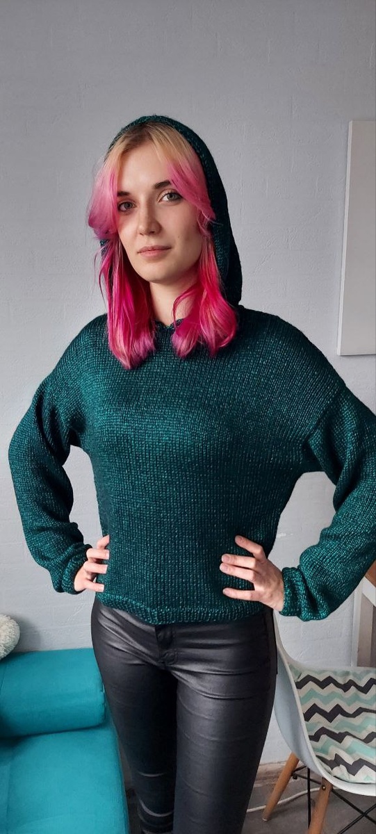 ✅ Одна из моих работ — изумрудное худи, с капюшоном