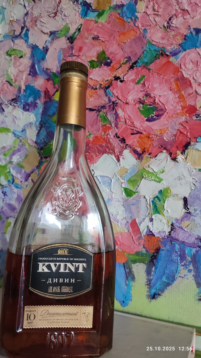 Продолжаем знакомиться с молдавскими дивинами (коньяками). Очередной обзор от моего друга Александра Соболева (текст автора). Герой сегодняшнего обзора - Бренди (дивин) КВИНТ (KVINT) возраст 10 лет. Всех приглашаю в мой Телеграмм канал и Max 😊 На развитие канала. Ни в коем случае мои отзывы не претендуют на безапелляционную объективность. Это только мое личное мнение о конкретном напитке, а оценка выражает только мое отношение к нему. Всем привет! Пришло время познакомиться с преемником известного молдавского «раритета» из КиБа. Предыдущий Квинт 10, носивший дополнительное звание Традиции Молдавии, превзошёл все ожидания, набрав у меня невероятные 90 баллов. Что же удастся «просто» десятке? Состав неизменен: винные дистилляты, выдержанные не менее 10 лет, вода. сироп. Сорта винограда: Уни Блан, Пино Блан, Рислинг (здесь уже нет Алиготе и Шардоне, бывших в прошлых розливах, в свою очередь появился Пино). Год урожая 2012, дата розлива 07.2025 г. И по прежнему настоящая корковая пробка!