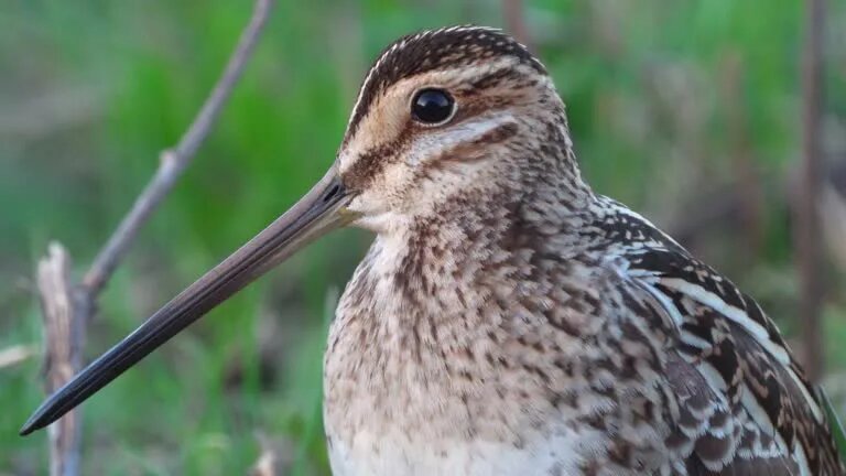 - Клюв: Отличительной чертой бекаса является его длинный, прямой и очень чувствительный клюв. Он служит ему основным инструментом для поиска пищи в мягком грунте. Клюв может достигать 6-8 сантиметров в длину.