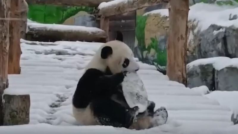 Панды Московского зоопарка Катюша и Диндин в восторге от снега (видео