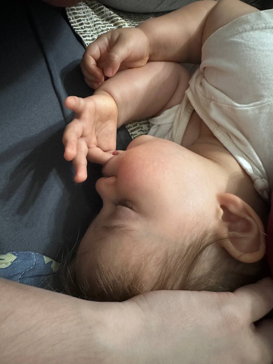 Арианна спит второй дневной сон. Мы кино смотрим, она между нами легла и уснула. То ли зубы, то ли заболевает… Будить не стала. Видимо на ночь ляжем не раньше часа ночи