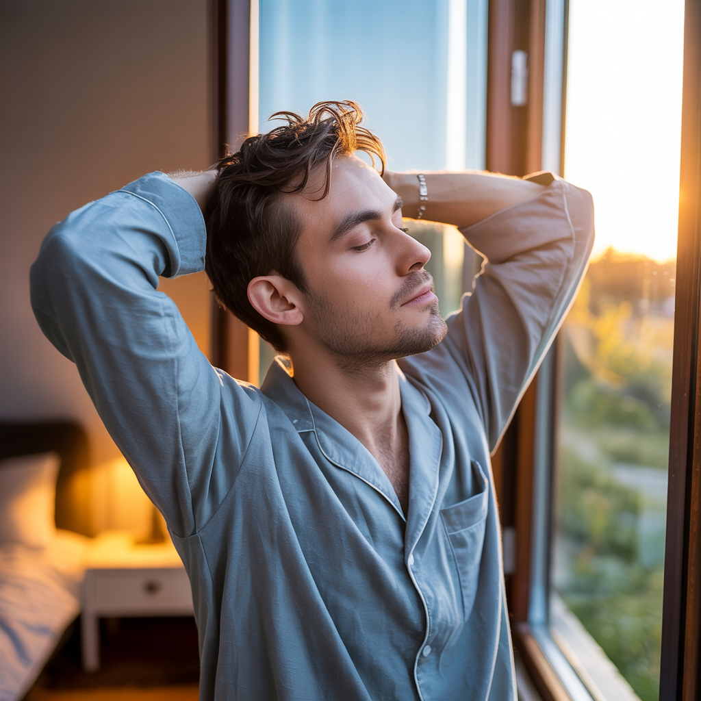 - Лёгкая физическая активность утром (необязательно тренировка, достаточно нескольких минут движений) помогает мягко активировать дофаминергические и другие системы, связанные с бодростью и настроением.