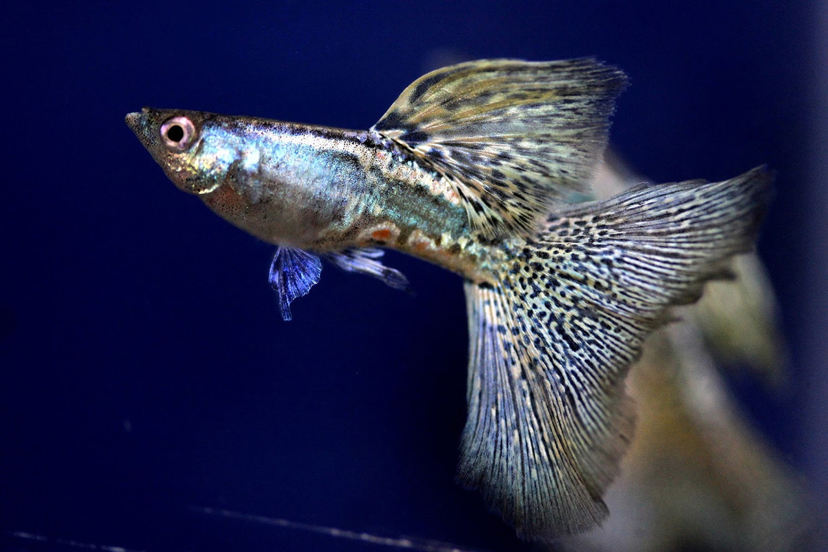 Внешность: Невероятное разнообразие! Селекционеры вывели гуппи всех цветов радуги и с разными формами хвостовых плавников (веер, лира, флаг, круглый и др.). Самцы мелкие (2-3 см), стройные, очень яркие. Самки крупнее (4-6 см), с полным брюшком и окрашены скромнее, обычно сероватых или золотистых тонов.