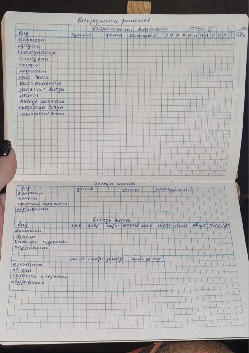 Вот такие таблички завожу на год