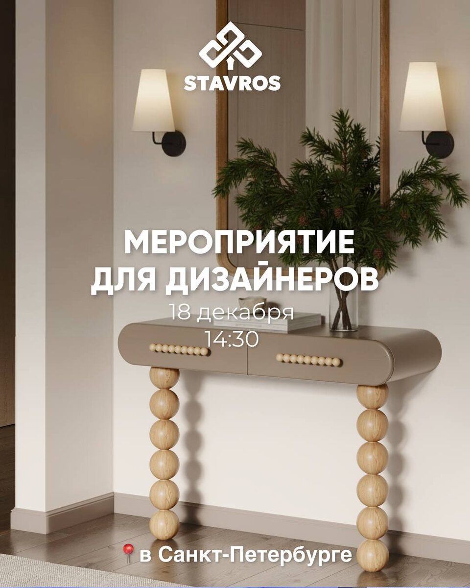 Ставьте ➕ в комментариях, чтобы забронировать место и получить подробную информацию. Встреча для дизайнеров в нашем шоуруме и на производстве STAVROS в Санкт-Петербурге. ▫️Познакомим с ассортиментом STAVROS. ▫️Обсудим тренды в дизайне, проведём экскурсию по производству (Петербург). ▫️Презентуем новые коллекции. ▫️Подарим эксклюзивный печатный каталог с актуальными идеями по применению. ☝Количество мест ограничено.