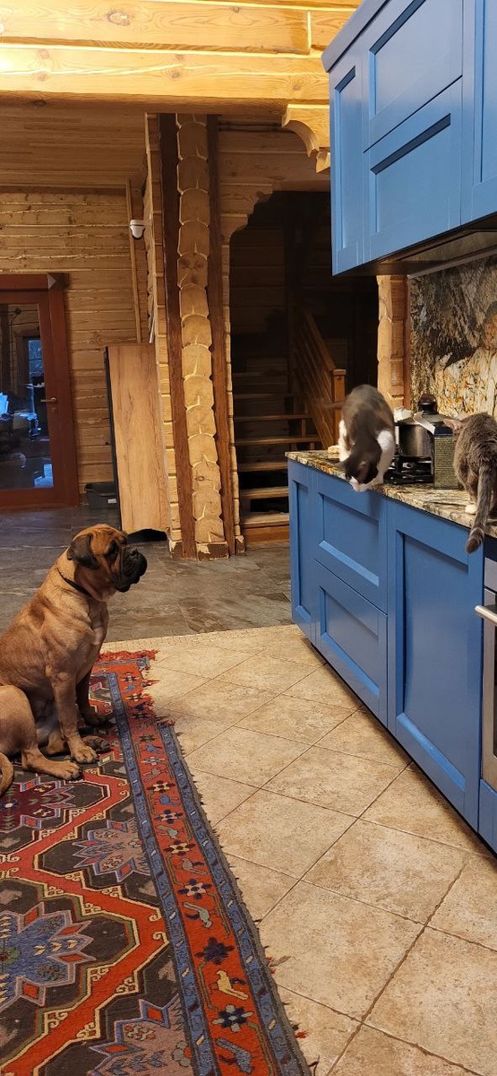 Такс, чего это вы там делаете, а?! <мимо моего рта😄😄> Сила взгляда! Работает безотказно у Жанны🙃 Помощница у меня выросла неожиданно! Веника уже давно воспитала не шариться по столам. Осталось теперь только помощницу научить самой не шариться по ним! Ибо тоже теперь дает слабину😄 #википавленкодом #Жанна_бульмастиф