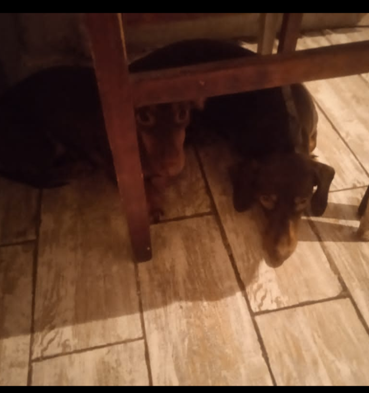 Перед отъездом я разговариваю со своими собаками как с людьми. Объясняю что уеду на столько-то дней, чтоб не скучали, чтобы слушались. Но похоже Николь из этого всего понимает только слово НЕ СКУЧАТЬ. С первого дня пошли звонки и сообщения что собаки шкодят. А точнее собака. Николь развлекается как может. Мишель в 11 месяцев перестала шкодить сразу после первой течки. А сейчас в свои пять с половиной лет ведёт себя как королева. Она лучше обидется и подберёт самую Страдальчискую позу. Чтобы было всём понятно, что она всех призерает. А вот шкодина Николь в свои два с хвостиком года продолжает творить чудеса. Сегодня умудрилась запрыгнуть на подокольник. Из самого ценого там был пульт от люстры. Ну таксе и такой трофей хорошо. Вот бабушка сегодня их отругала и наказала. И прислала такое фото Ну тут сразу понятно кто устала от этого всего и не при чем. А кто своими шкодливыми глазами из-за стула выглядывает и надеется, что в случае чего мама заступится