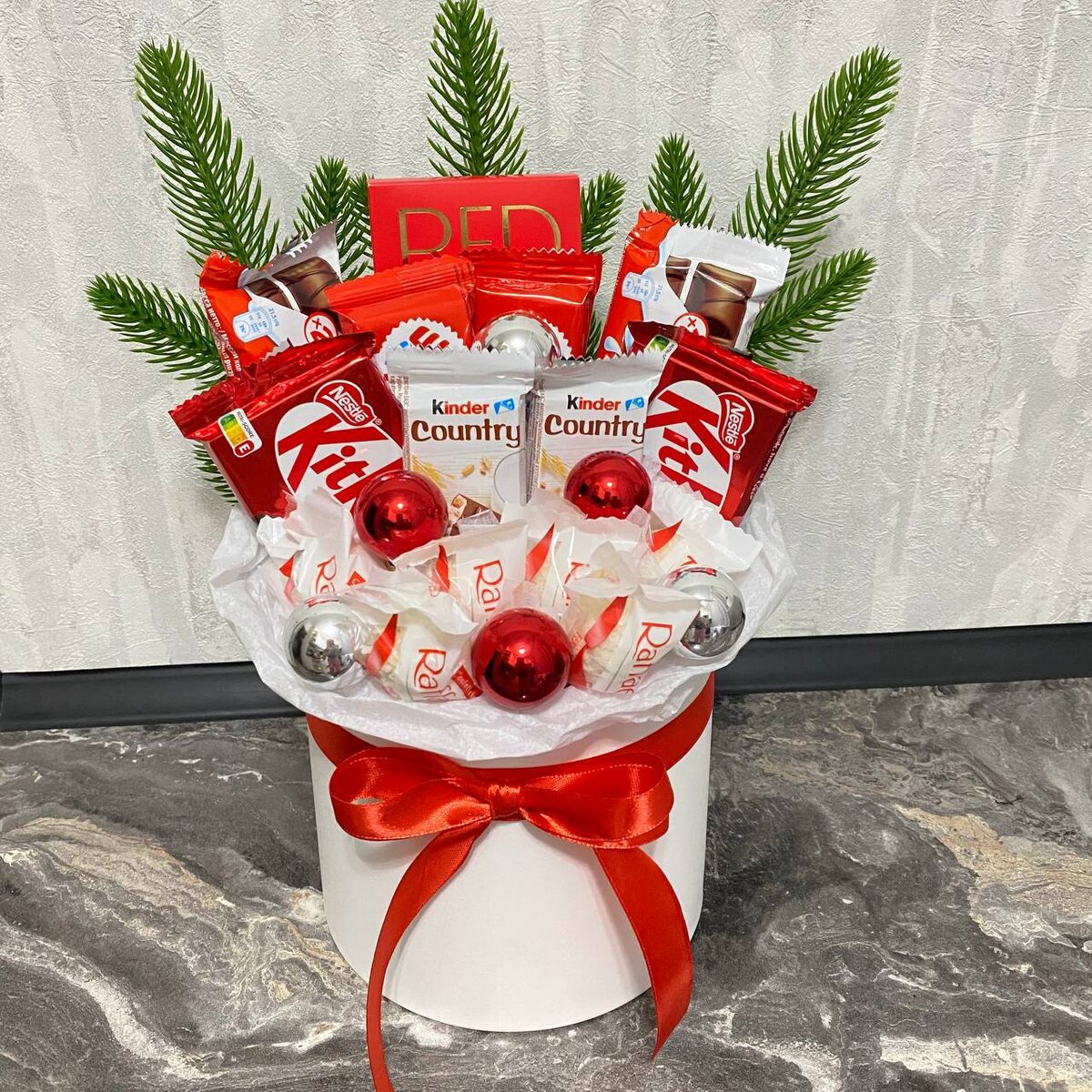 Букет в шляпной коробке с шоколадом и конфетами рафаэлло 🎄😍❤️