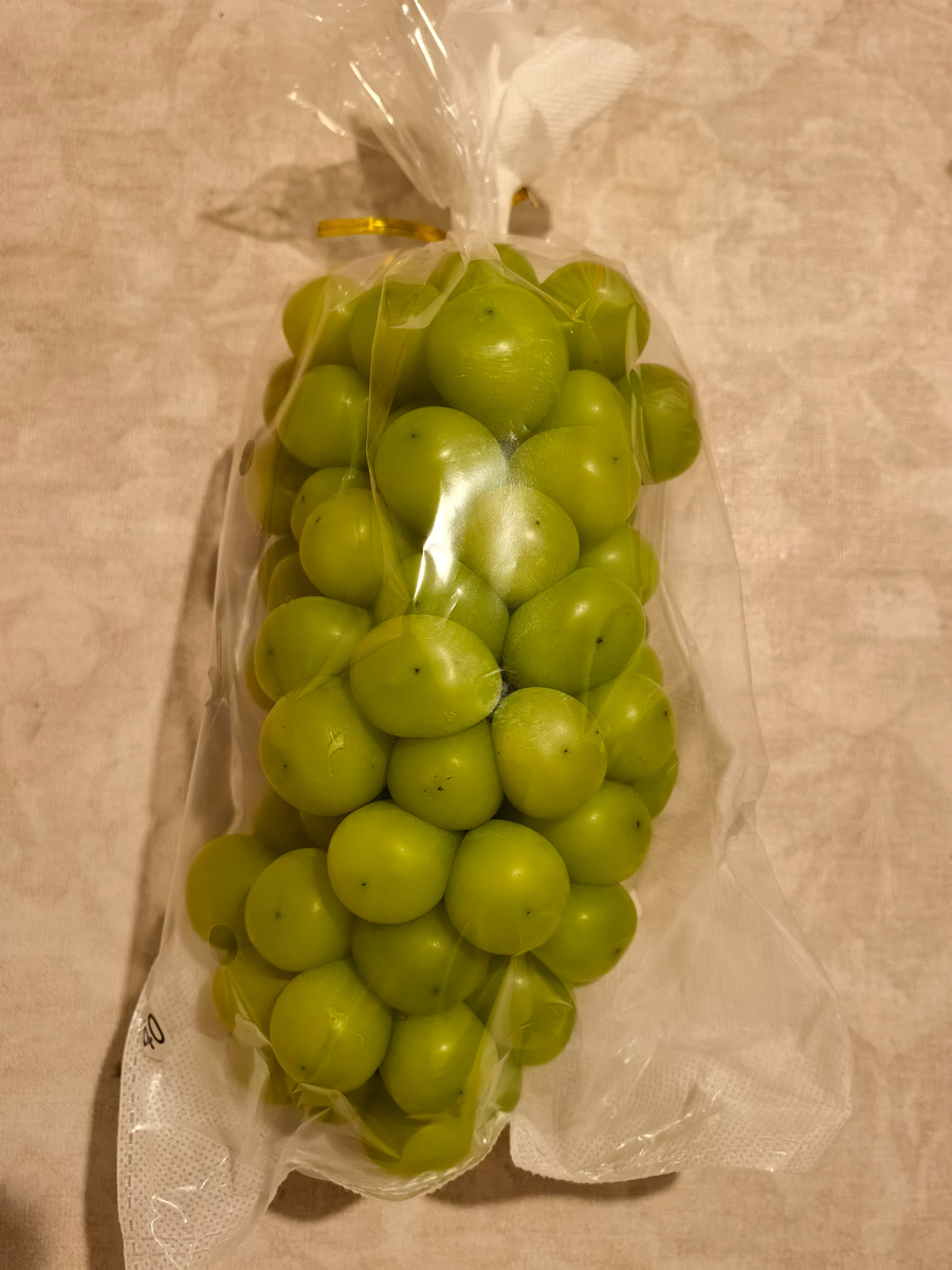 Ну вот наконец-то и я купили этот модный виноград, Шайн мускат.Год вокруг него ходил, видел но что то не хотелось его брать . Пишу отзыв, вдруг кому интересно. Покупал в магазине , крупные кисти упакованы каждая по отдельности. Вес больше килограмма, отдал 520 р. Сразу внимание желающим приобрести: товар не очень ходовой, так как недешёвый, поэтому смотрите внимательно, внутри кисти может быть плесень и на ягодках тоже. По этой причине его хранить не буду , сразу разобрал на ягоды, помыл и весь съесть не получилось ! 😁 Косточек действительно нет почти в две попалось все́ таки, кожура тонкая. Вкус совсем не похож на виноградный, а нечто среднее между крыжовником и киви или сливой . Кислинка чуть- чуть заметная, и сладость не приторная. Не спорю, вкус приятный но не вау такого эффекта не было .Аромата нет. про состав: суточная доза аскорбинки в 200 гр ягод. Есть ещё железо и калий, но не так уж много. Наткнулся на статьи о том, что ай-яй-яй, ГМО-виноград, и ойейей, напичкан удобрен