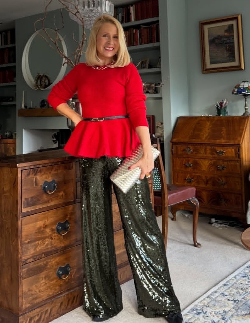 ✅ Сбалансируйте стили. Праздничную деталь (блестящие, шелковые или просто очень нарядные брюки) уравновешивайте простым верхом.