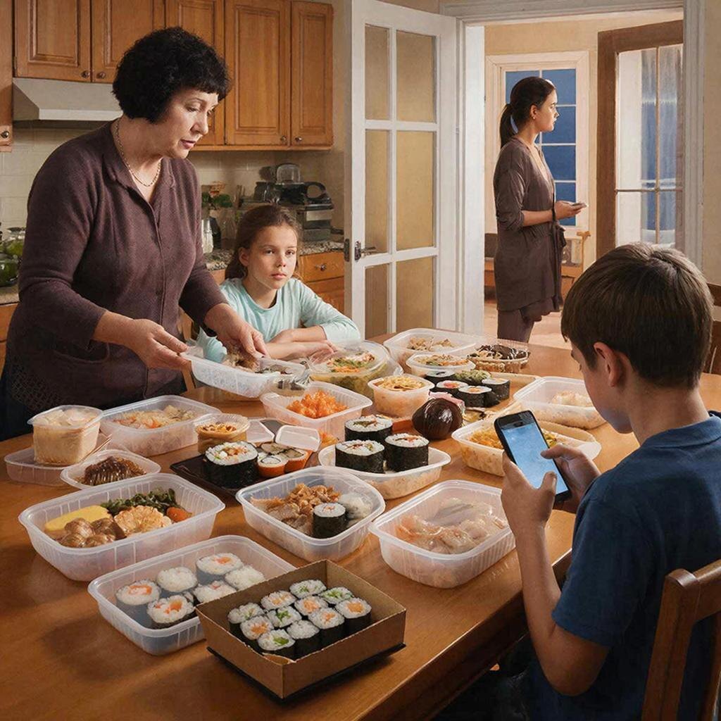 Ольга не ответила. Она сделала глоток воды, поставила стакан и обвела взглядом стол, уставленный ее суши и привезенными с собой контейнерами. Ее взгляд скользнул по лицам родственников, задержался на растерянном лице мужа.