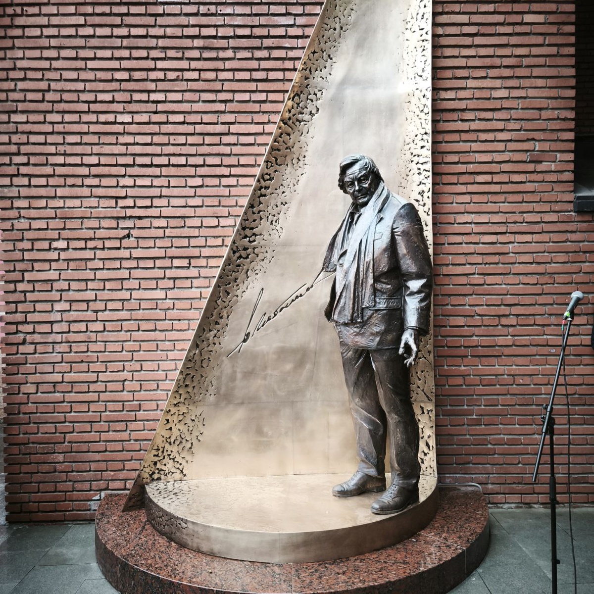В Москве у Театра на Таганке открыли памятник его основателю и художественному руководителю Юрию Петровичу Любимову. Монумент установили у входа на Новую сцену театра со стороны Верхней Радищевской улицы. Автором бронзовой фигуры стал заслуженный художник России Владимир Иванов. Финансовую поддержку проекту оказал Союз театральных деятелей России и мэр Москвы Сергей Семенович Собянин. На торжественной церемонии открытия присутствовали знаменитые актеры и общественные деятели: Ирина Апексимова, Евгений Миронов, Леонид Ярмольник, Михаил Швыдкой, Елена Батурина и другие. Ирина Апексимова, заслуженная артистка РФ, директор Московского театра на Таганке: «Юрий Петрович обладал такой мощью, таким мощным импульсом, что этот район и этот театр стали точками на культурной карте мира. И вот уже более 60 лет, несмотря на все перипетии в жизни этого театра, он остается местом, куда притягивается невероятное количество талантливых людей и зрительской аудитории». Леонид Ярмольник, актер: «Я рабо