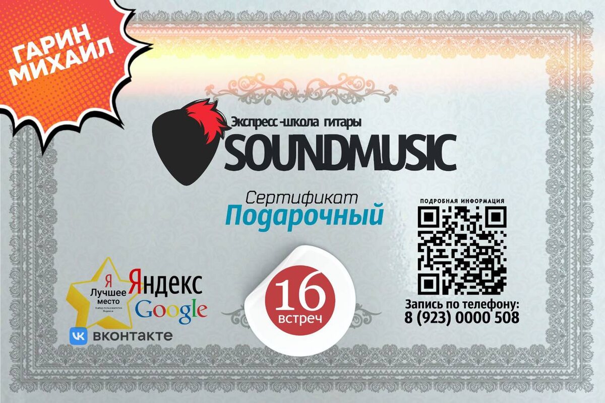 До 17 декабря есть 3 из 4 подарочных сертификата на полный курс обучения игре на гитаре в soundmusic54.ru — по 12.000 вместо 22.500 Делайте подарки своим близким, которые действительно очень хотят научиться играть музыку с полного нуля. Гарантия получения навыка 95%, где 5% на ответственности желающего. Абсолютно все детали — soundmusic54.ru/way Интервью/результаты — soundmusic54.ru/#video 20 преимуществ школы — soundmusic54.ru/#menu Рейтинг лучших из 2000 — soundmusic54.ru/top Заказать сертификат: Звонки: 8 (923) 0000 508 Сообщения: t.me/soundmusic54