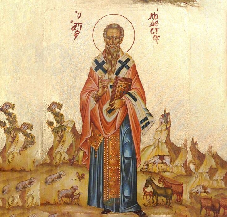 - Время жизни Модеста пришлось на войну между Византией и Персией (Сасанидским царством). В 614 году персидский шах Хосров II захватил Иерусалим, разрушил храмы и увёл в плен тысячи христиан.